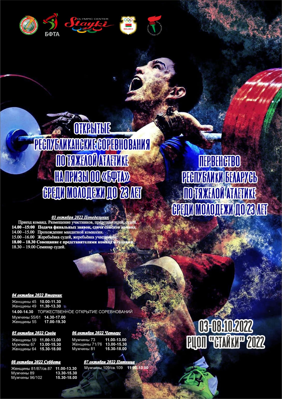 Открытые республиканские соревнования на призы БФТА среди молодежи до 23 лет Первенство Беларуси (молодежь до 23 лет) 03-08.10.2022 РЦОП «Стайки»